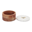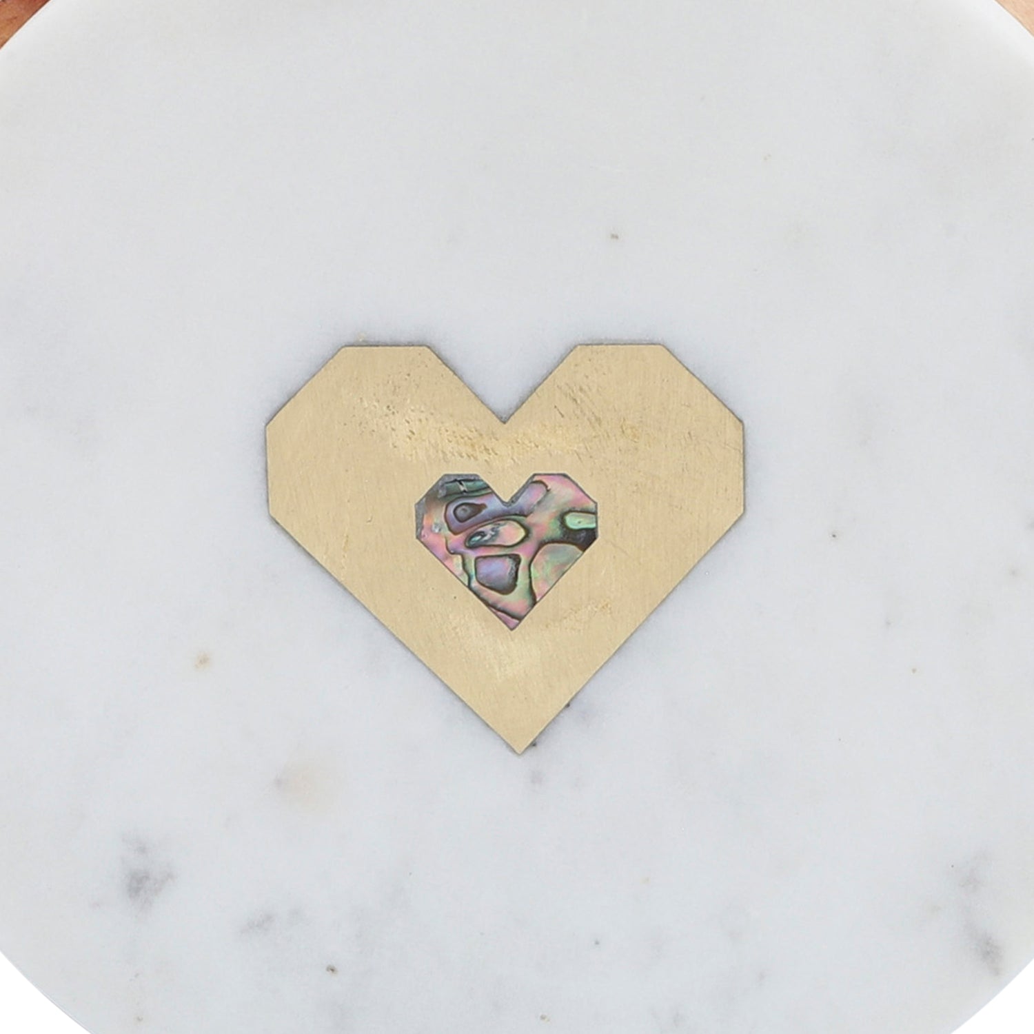 MARBLE/WOOD, 5X5 ROUND BOX-HEART, WHITE