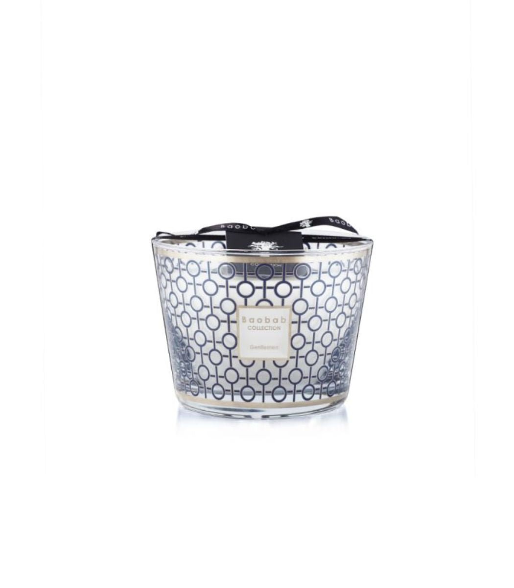 This scented candle for men comes in a glass adorned with platinum and ultramarine decoration, and is packed with masculine candle scents.
