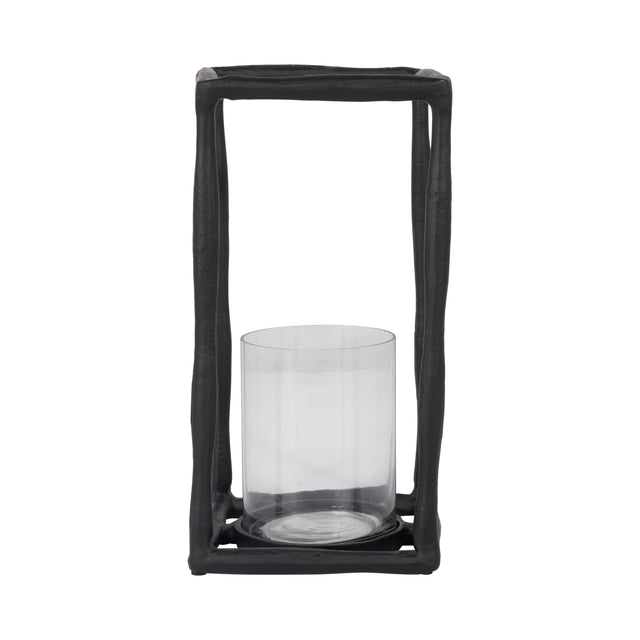 METAL, 12" OPEN SQUARE HURRICANE HOLDER, BLACK