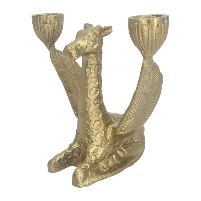 Metal, 6" Giraffe W/ Wings 2 Taper Candle Holder,