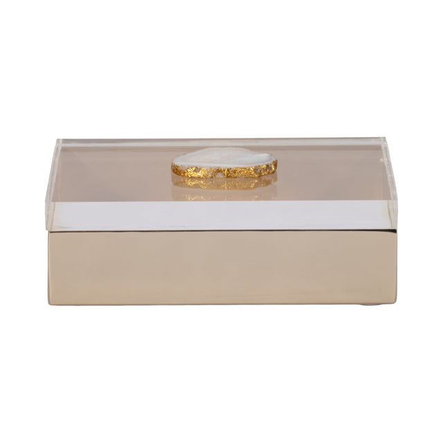 Metal, 7x5 Box W/ Acrylic Lid Agate Knob, Multi