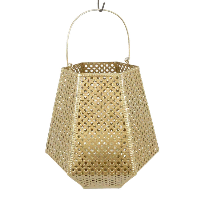 Metal Diamond Shaped Pierced Lantern, Gold is backordered and will ship as soon as it is back in stock.