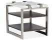 The Metal Rectangular End Table features a sleek brushed stainless steel frame, a luxurious Pearl White marble top, and two Roasted Almond wood shelves. This modern accent table adds elegant style and practical storage to any contemporary living space.