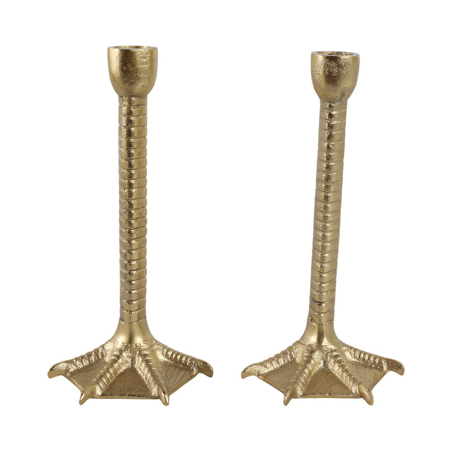 Metal, S/2 9" Bird Legs Taper Candle Holders, Gold