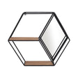 METAL/WOOD 20" HEXAGON MIRRORED WALL SHELF, BLACK