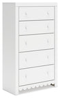 Make getting ready for the day (or bed) that much more magical with the Mollviney chest of drawers. Charmingly cute with its scalloped detailing, it appeals to both her sense of playful whimsy and your love for modern design. And the chest's crisp white finish gives you the versatility to pair it with existing decor.