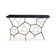 The Nate Slate Console Table is not for the faint of heart. This natural slate table features a dark, rough edge that shows off layers of rock, created slowly by the passing of time. An edgy, iron construction with a complimenting brass finish makes this is a fierce piece of furniture.