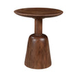 Sculpted serenity. Built from solid acacia wood, the Nels end table puts the materials front and center, serving as a natural showcase for the woodgrain. Its tastefully sculpted form features a broad base and a simple round tabletop, a pedestal for beautiful happenings. For a perfectly simple take on contemporary design, look to Nels.