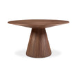 Spanning almost five feet, the circular Otago dining table can seat up to eight people in style. The all-walnut base and top give this table a sleek, warm aesthetic, allowing it to fit seamlessly into any dining room setting. Otago's semi-gloss, natural walnut finish and sharp geometric design tops off the contemporary feel.