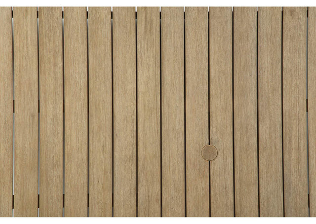 An effortlessly elegant choice in outdoor furniture, this 7-piece dining set marries sturdiness and style in such a delightful way. For that much more weather protection, the set's eucalyptus wood is treated to a 5-step finishing process. Sumptuously soft yet remarkably durable, the included cushions are wrapped in a high-performing, low-maintenance Nuvella® fabric you're sure to love.