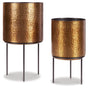 Planter Set (2/CN),Medium,Set of 2 planters;Made of metal;Antiqued brass-tone finish;Black finish