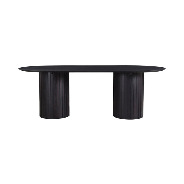 A convergence of shape and form, the Povera dining table will serve as the pillar of your dining area. Povera features two large columns supporting an expansive tabletop, their gentle ribbing reminiscent of ripples and waves. With beautifully darkened acacia wood, this dining table uses simple geometry and natural materials to form an experience. Offering bold statement appeal, Povera incorporates the elegance of ratio into your dining area.