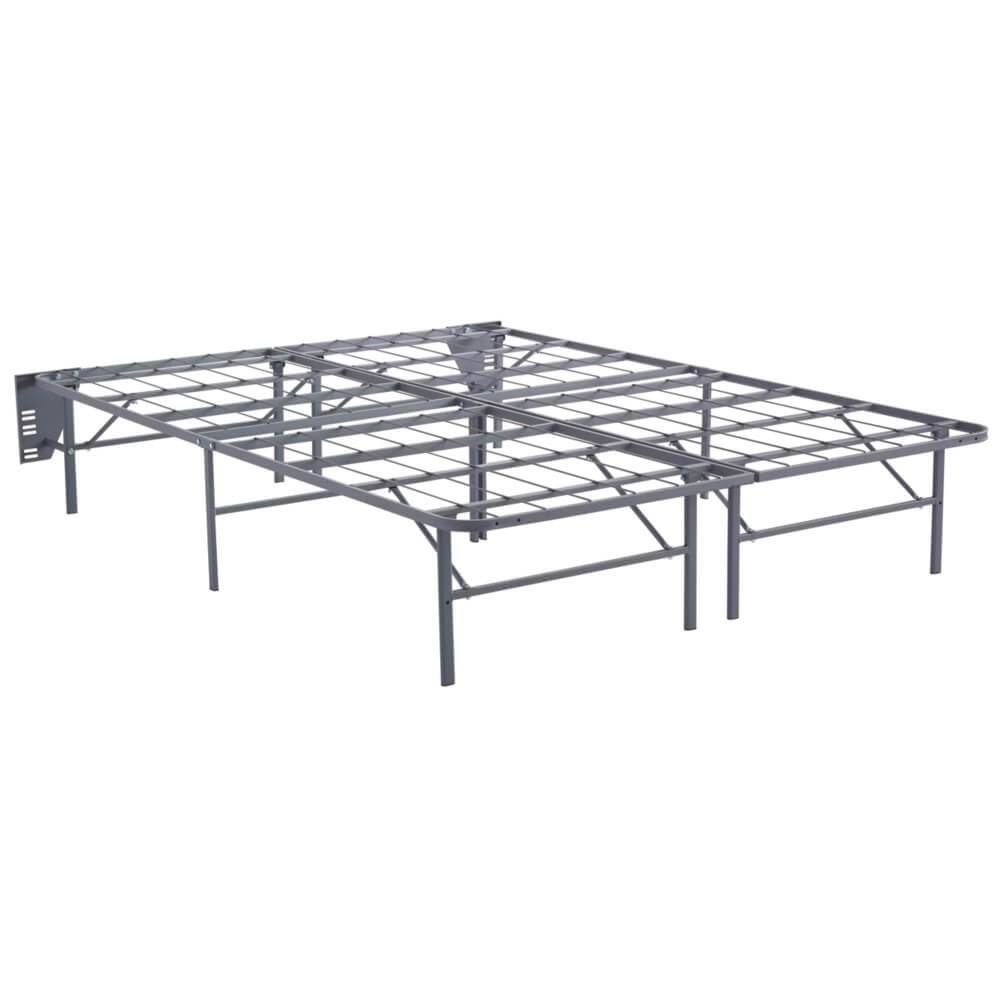 Behold the newest foundation of comfort. This queen mattress riser is an all-in-one support system that takes the place of an ordinary bed frame and box spring. The metal unit sets up quickly and without using any tools, creates a sleep haven with unwavering support. Included brackets attach the riser to a headboard. Even better: the clearance from frame to floor is incredibly spacious and ideal for under-bed storage.