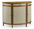 The Inductance demi lune from Jonathan Charles evokes the feeling of summers in the South of France and balmy rides in vintage convertibles. A solid case with Kravet linen fabric cabinet doors and understated hardware is capped with a single drawer under a grey fruitwood top. Hovering a few inches above the floor on handsomely tapered feet with traditional accents, Inductance plays well with sophisticated spaces and vintage interiors.