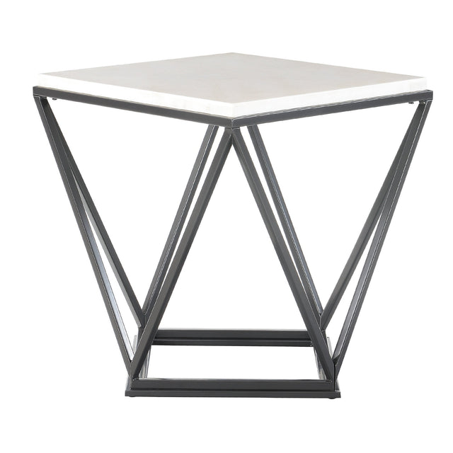 The Riko Square End Table is the perfect addition to your home! This end table features a white marble table top that pairs beautifully with the powder coated black base. One of the cool features about this table is the funky base, making it a true standout in your home. The sleek, clean lines will make this a staple in your home year after year; even as your style changes.