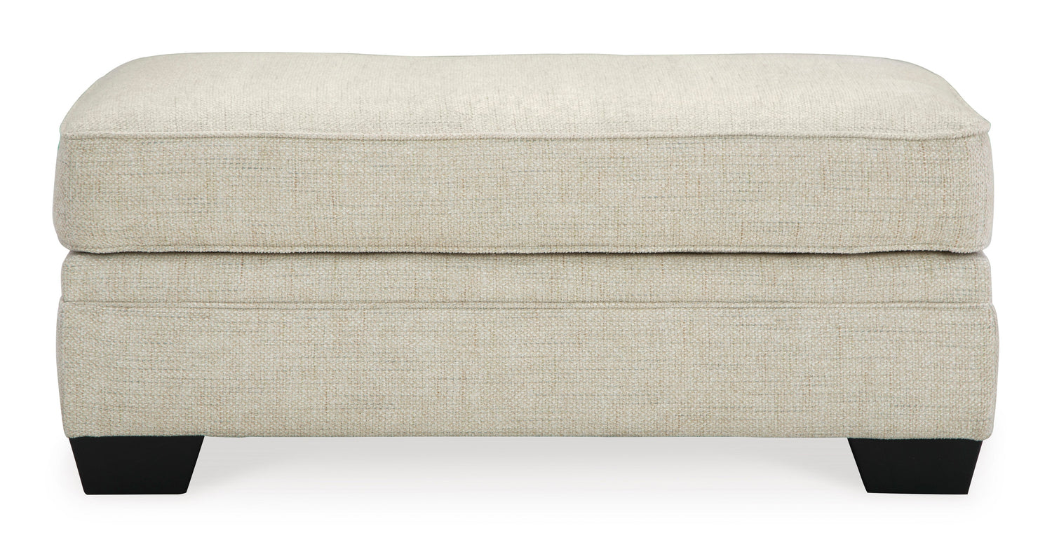 Generously scaled and richly versatile, the Rilynn ottoman exemplifies the best in timeless classic style. It's splendidly tailored with tri-block accent legs, for a look that's traditional yet far from stuffy. Light, fresh and loaded with multi-textural interest, the ottoman’s soft chenille upholstery is pure pleasure for the senses.