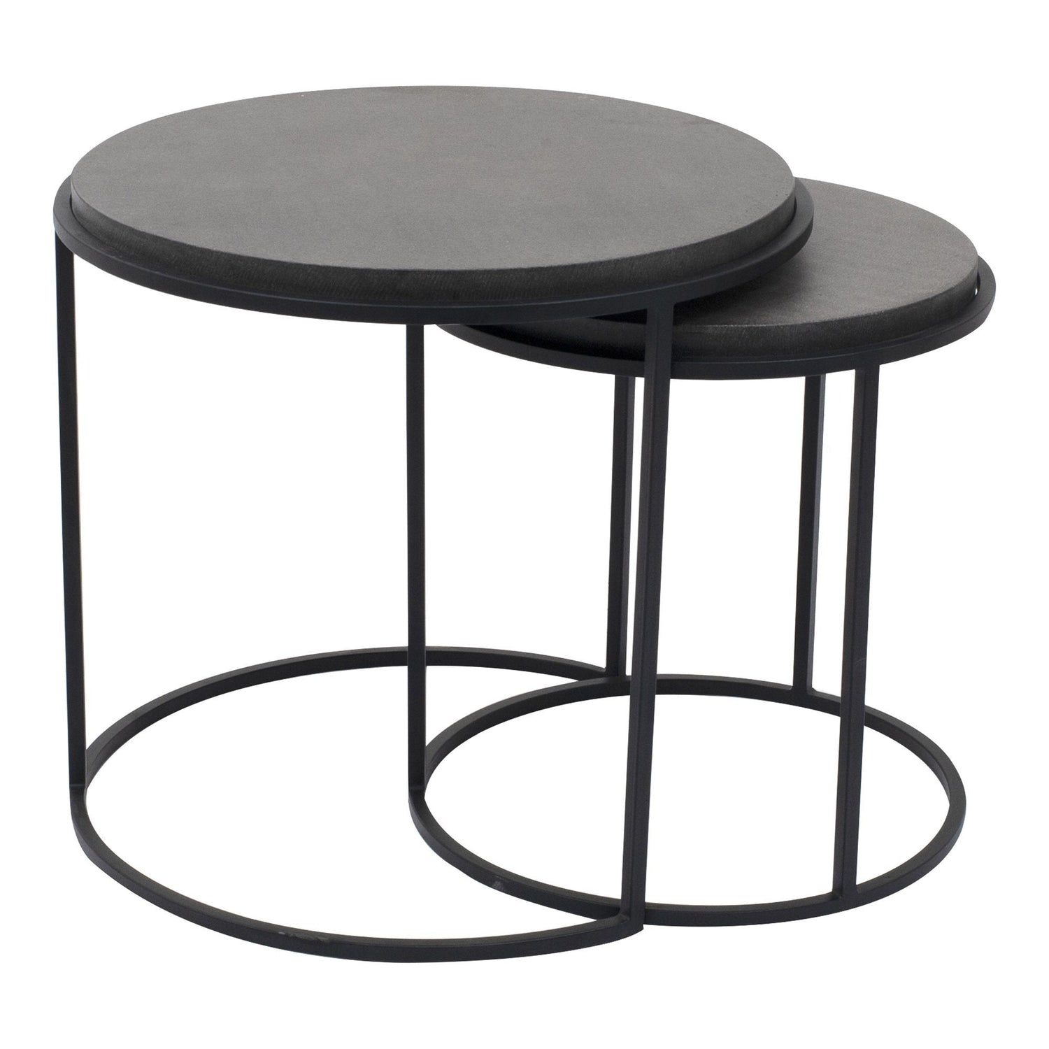 With a lava stone tabletop and iron base, the Roost nesting tables bring a contemporary modern edge to your space. Nesting tables allow for versatile use in several parts of your home. Separate them for added side tables or store them together to save on space.