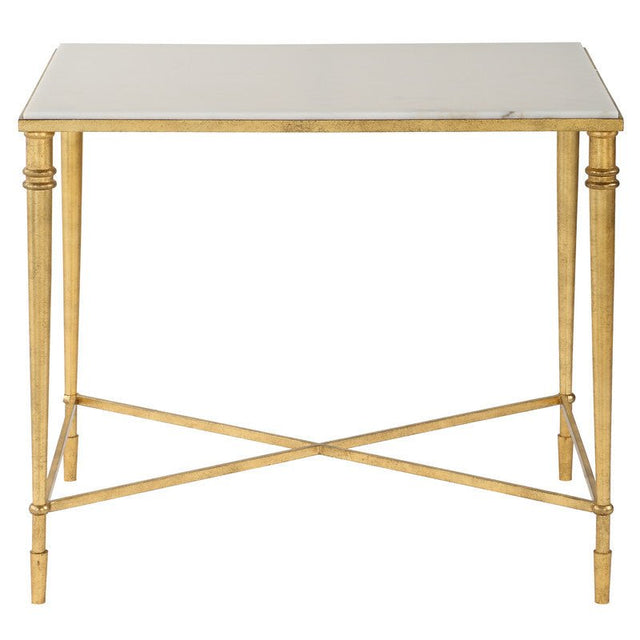 Introduce a touch of elegance to your living space with Uttermost's Newest Collection the ROSHN Rectangle End Table. Crafted with a natural marble top, this table exudes a luxurious and sophisticated feel. Perfect for showcasing your favorite decor pieces or for holding your essential items, this end table combines both style and functionality.