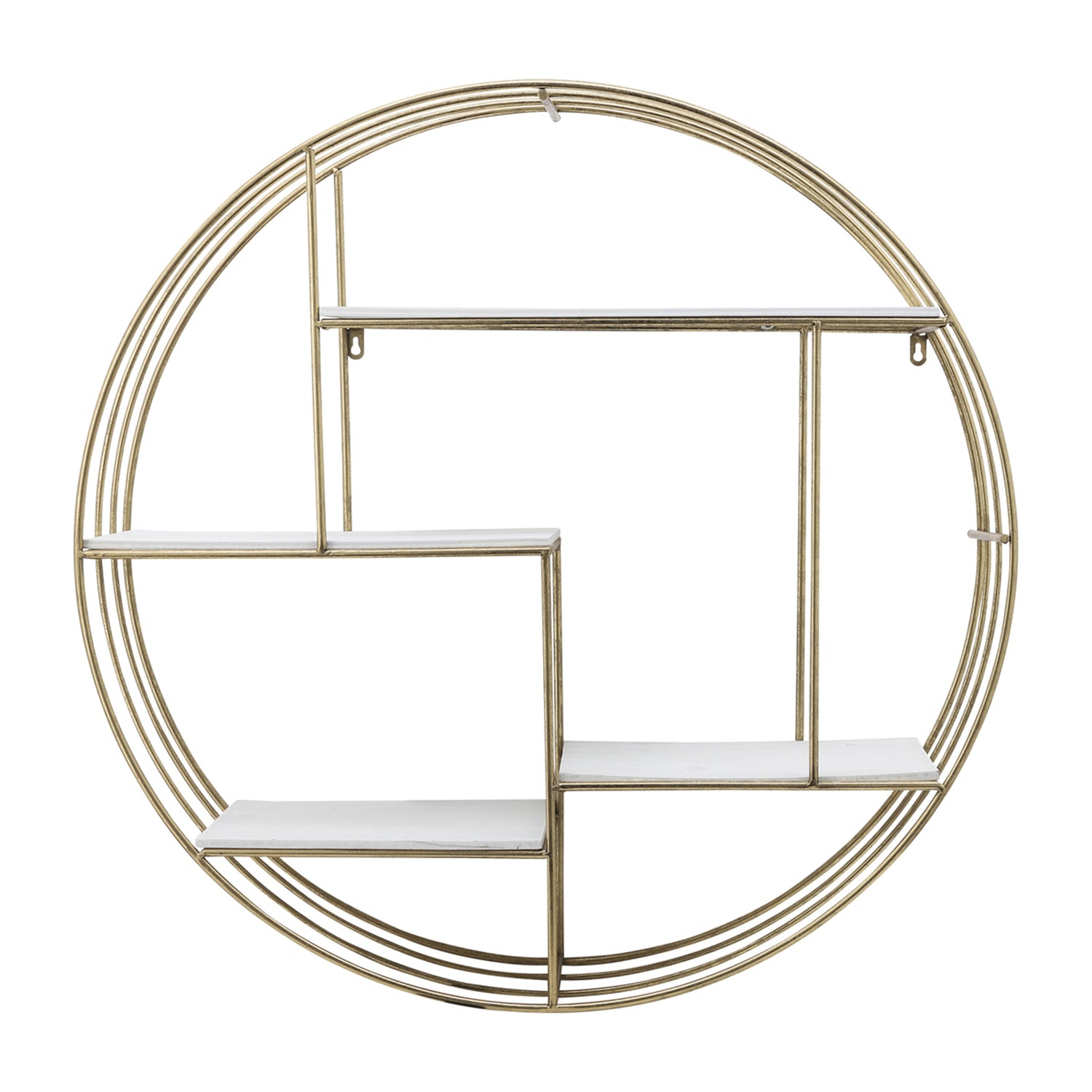 ROUND 31.5" WOOD/METAL WALL SHELF, WHITE WASH