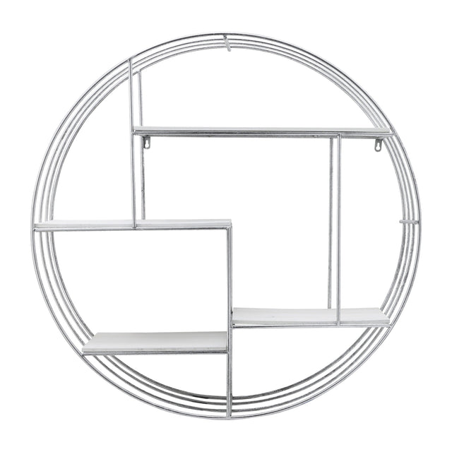 ROUND WOOD/METAL WALL SHELF WHITE/SILVER