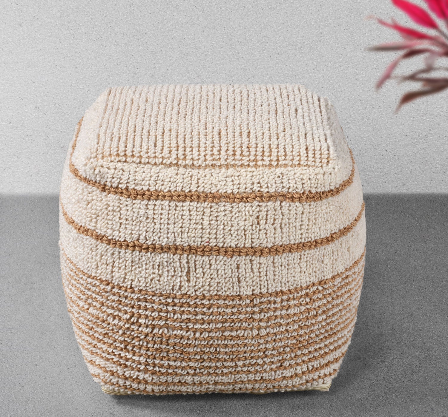 Introducing the Rylie Pouf, an ethereal creation born from the whimsical weavings of jute and wool. Its natural and ivory hues whisper secrets of enchanted forests and soft whispers of comfort. Let the magic unfold as you immerse yourself in the enchanting embrace of the Rylie Pouf.
