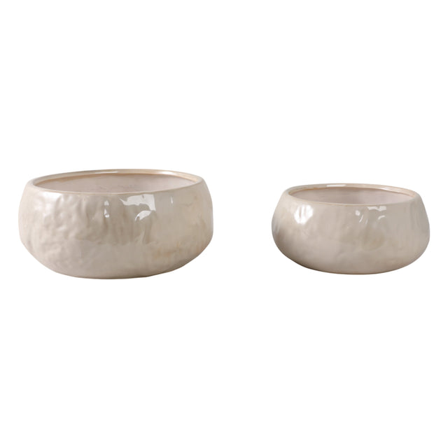 S/2 10/12" IRIDESCENT BOWL PLANTERS, WHITE