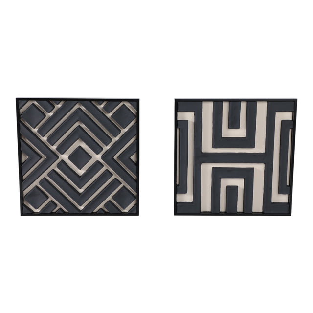 S/2 20x20 Wood Valencia Wall Art, Black/cream