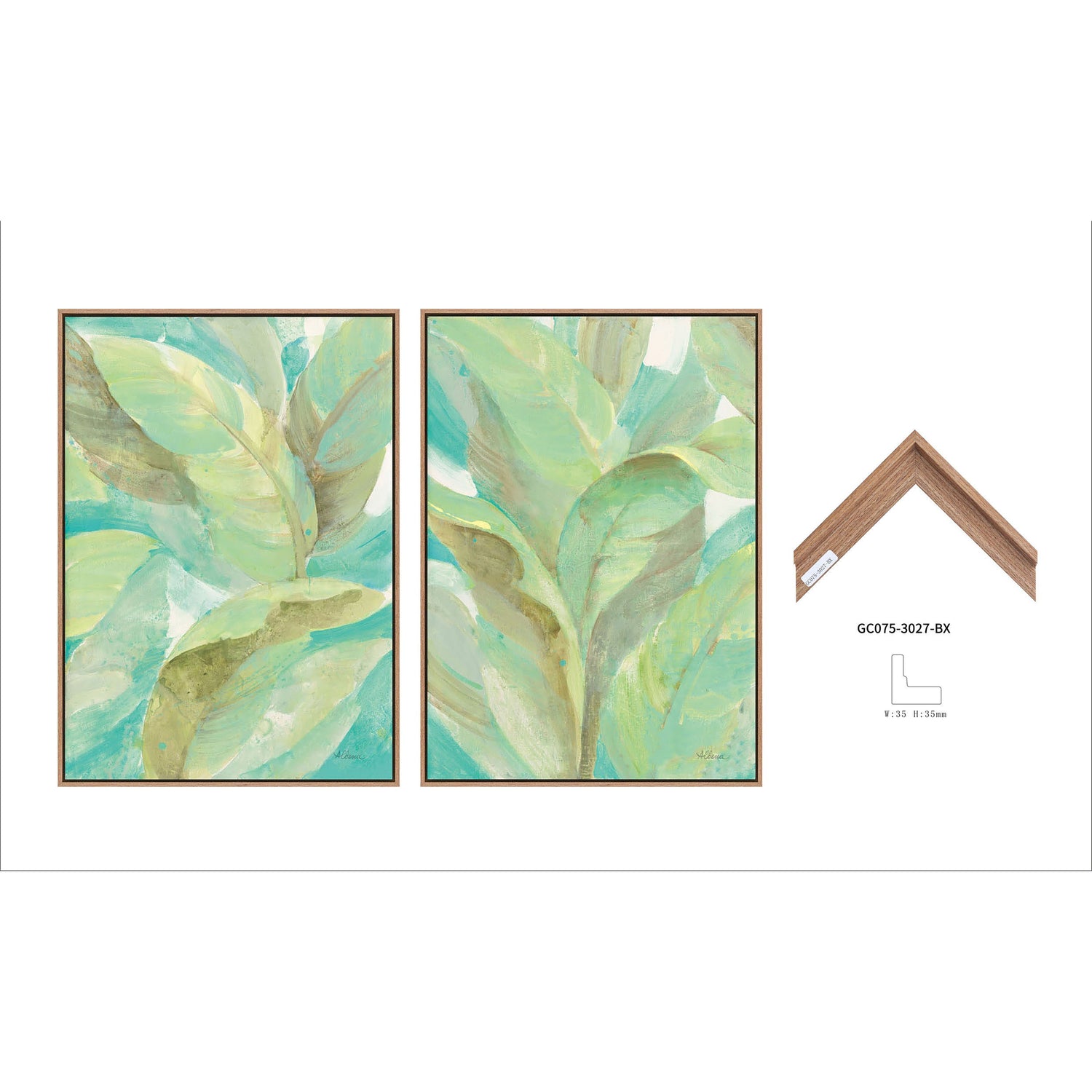 S/2 21X29 LEAVES ON CANVAS, GREEN