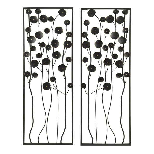 S/2 36" Dainty Flowers Metal Wall D?cor, Black/gol