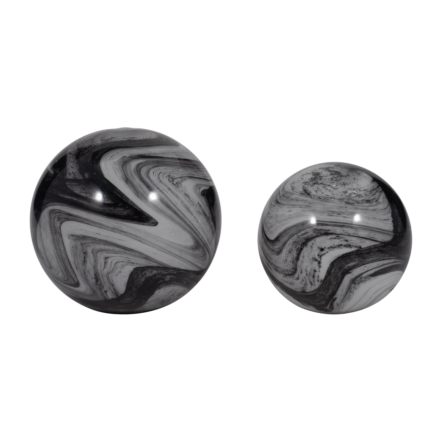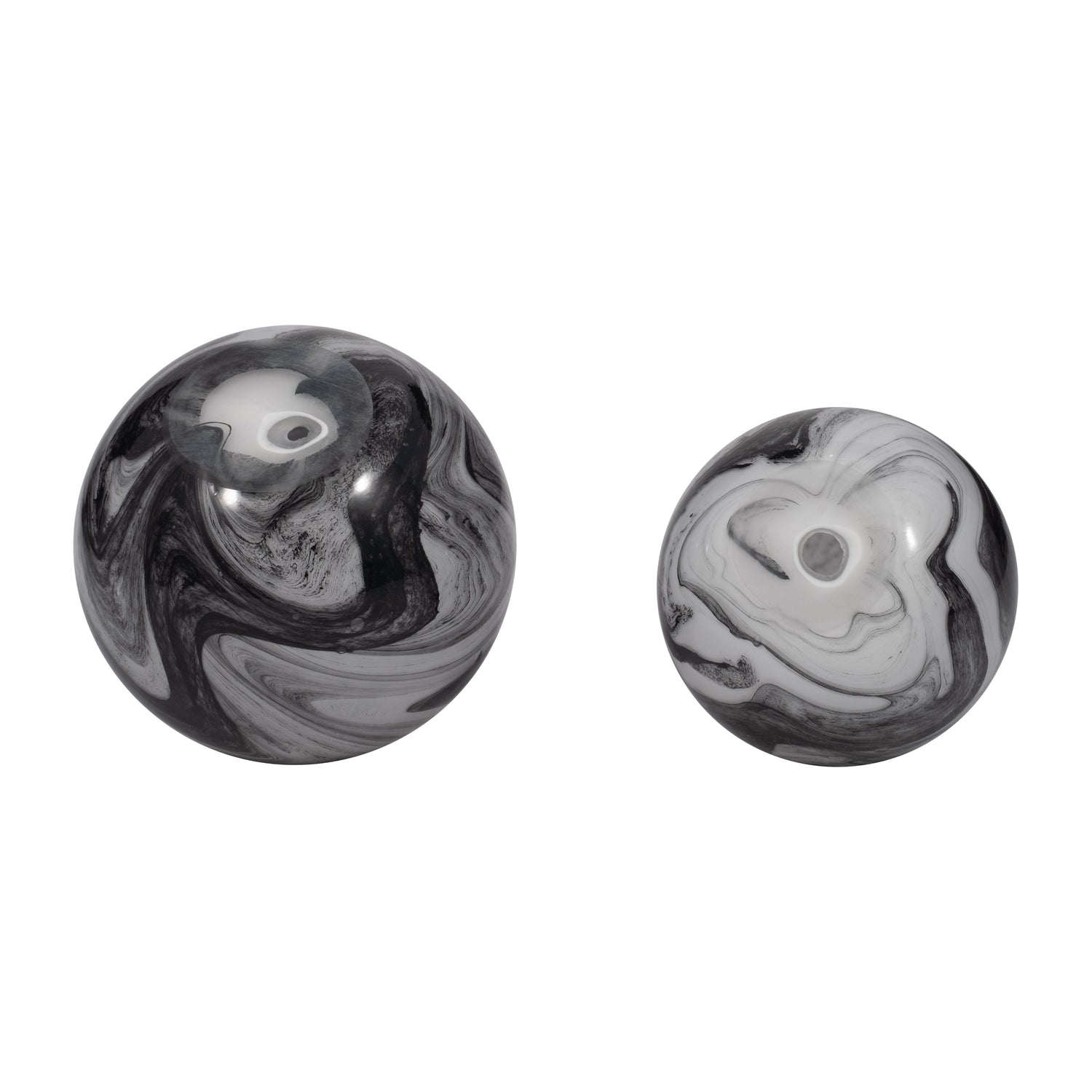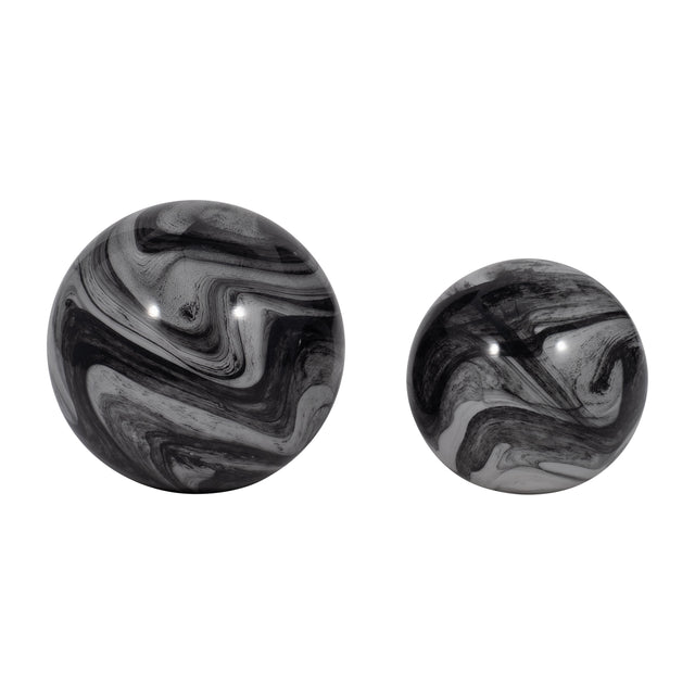 S/2 5/6" KATRINA GRAY SWIRL SPHERES