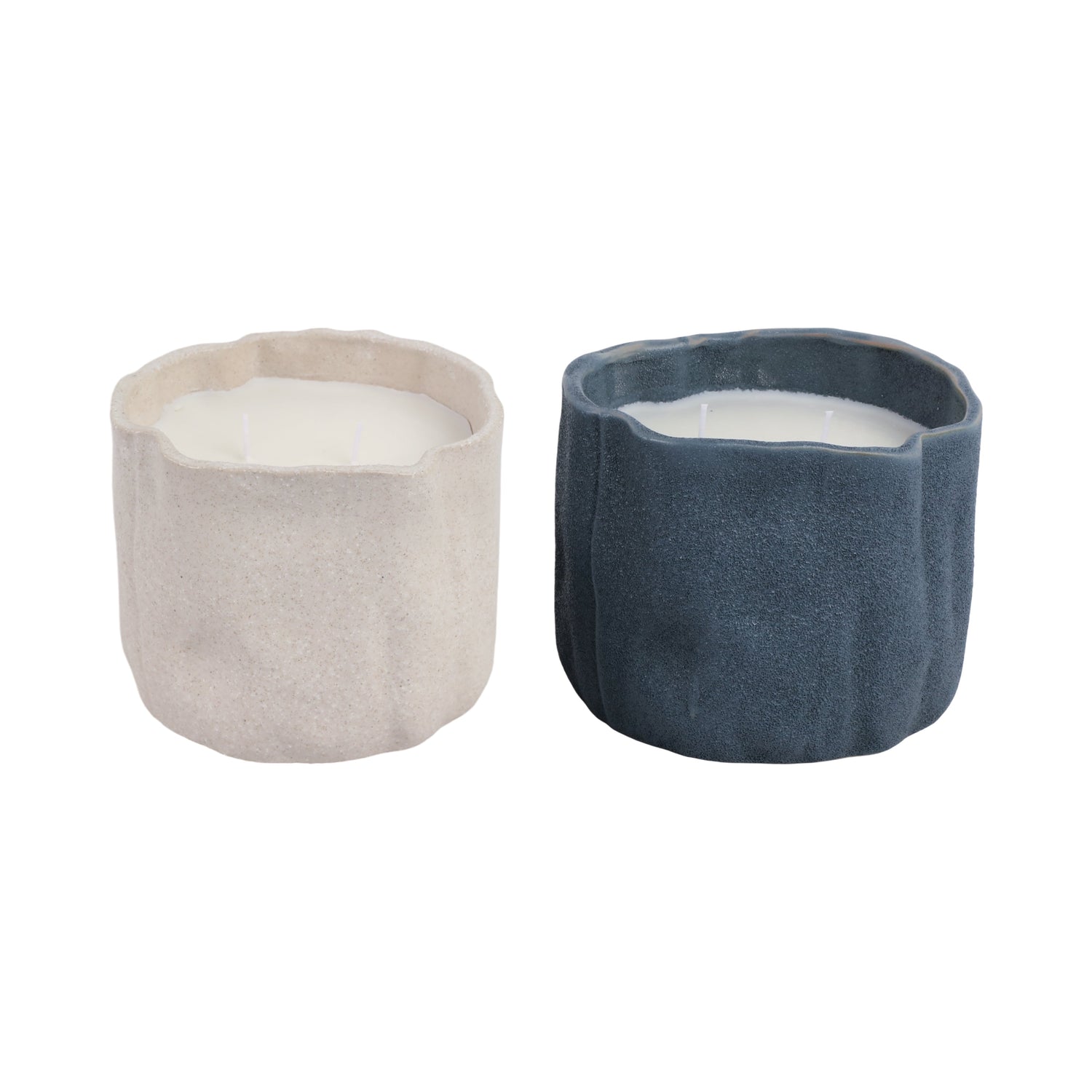 S/2 6" 31 Oz Pink Beach Wavy Candle, Ivory/blue