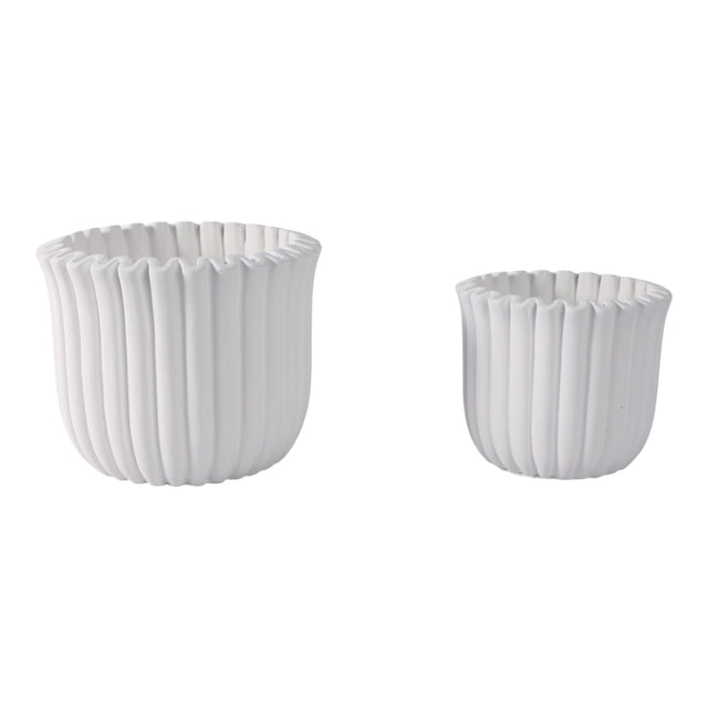 S/2 6/8" Fluted Planters, White is backordered and will ship as soon as it is back in stock.
