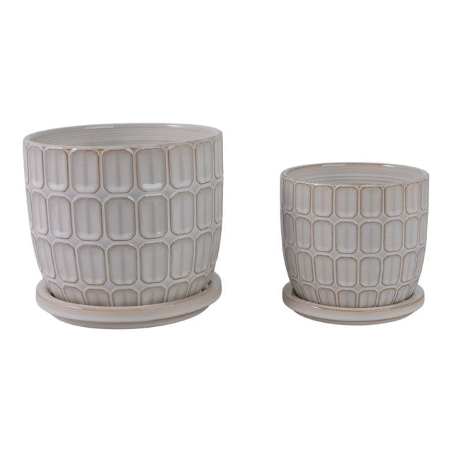 S/2 6/8" Squoval Design Saucer Planters, White