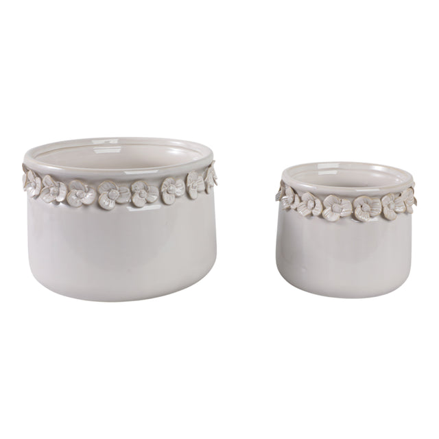 S/2 7/10" Floral Applique Planter, Ivory is backordered and will ship as soon as it is back in stock.