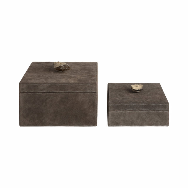 S/2 7/9" SOWETO SUEDE BOXES W/STONE KNOB, GRAY