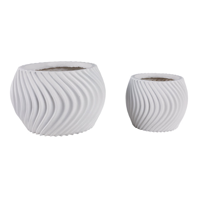 S/2 8/12" Curvy Lines Rounded Planter, White