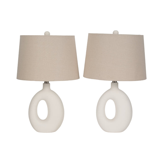 S/2 Ceramic 23" Open Cut Out Table Lamp, White/tan