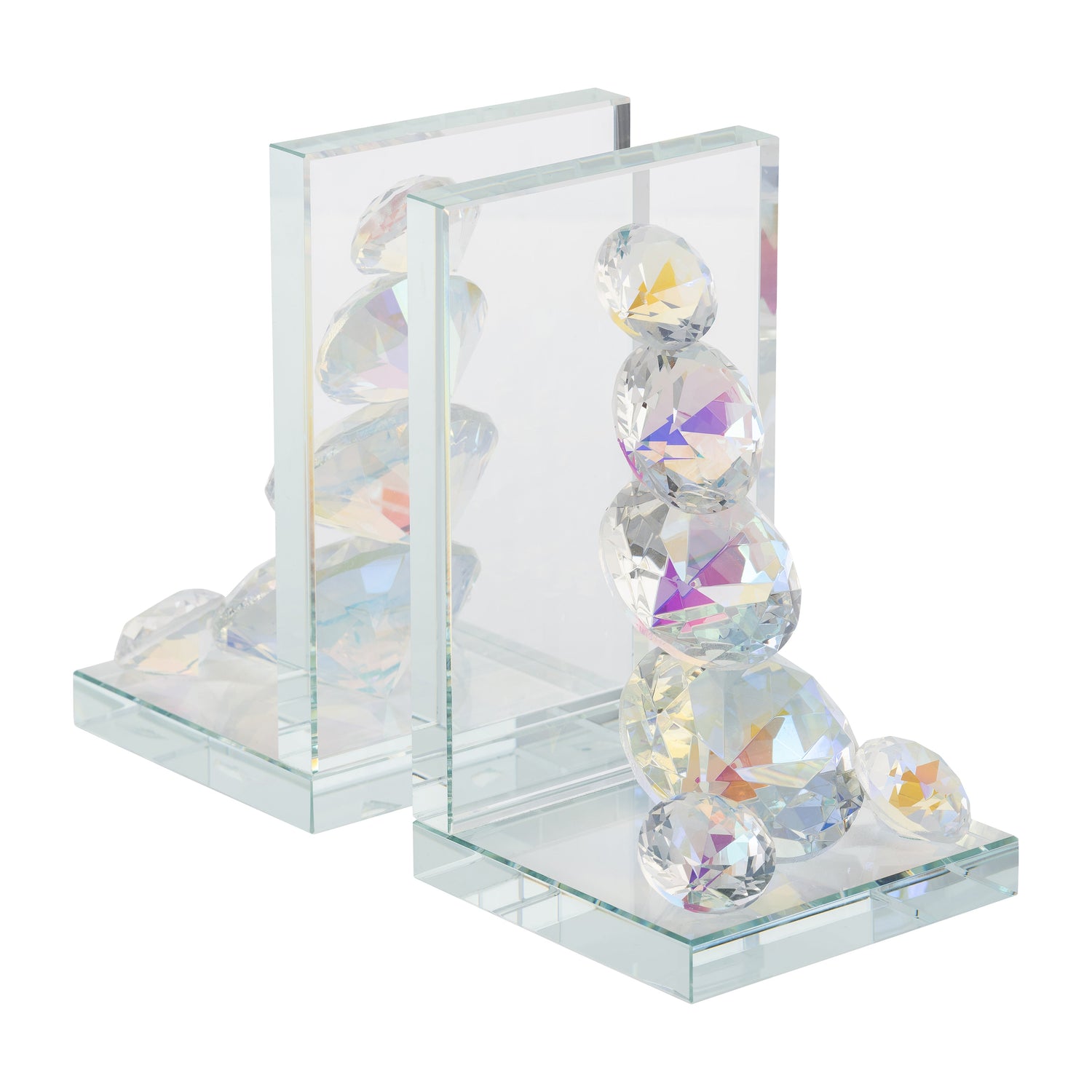 S/2 CRYSTAL DIAMOND BOOKENDS, RAINBOW