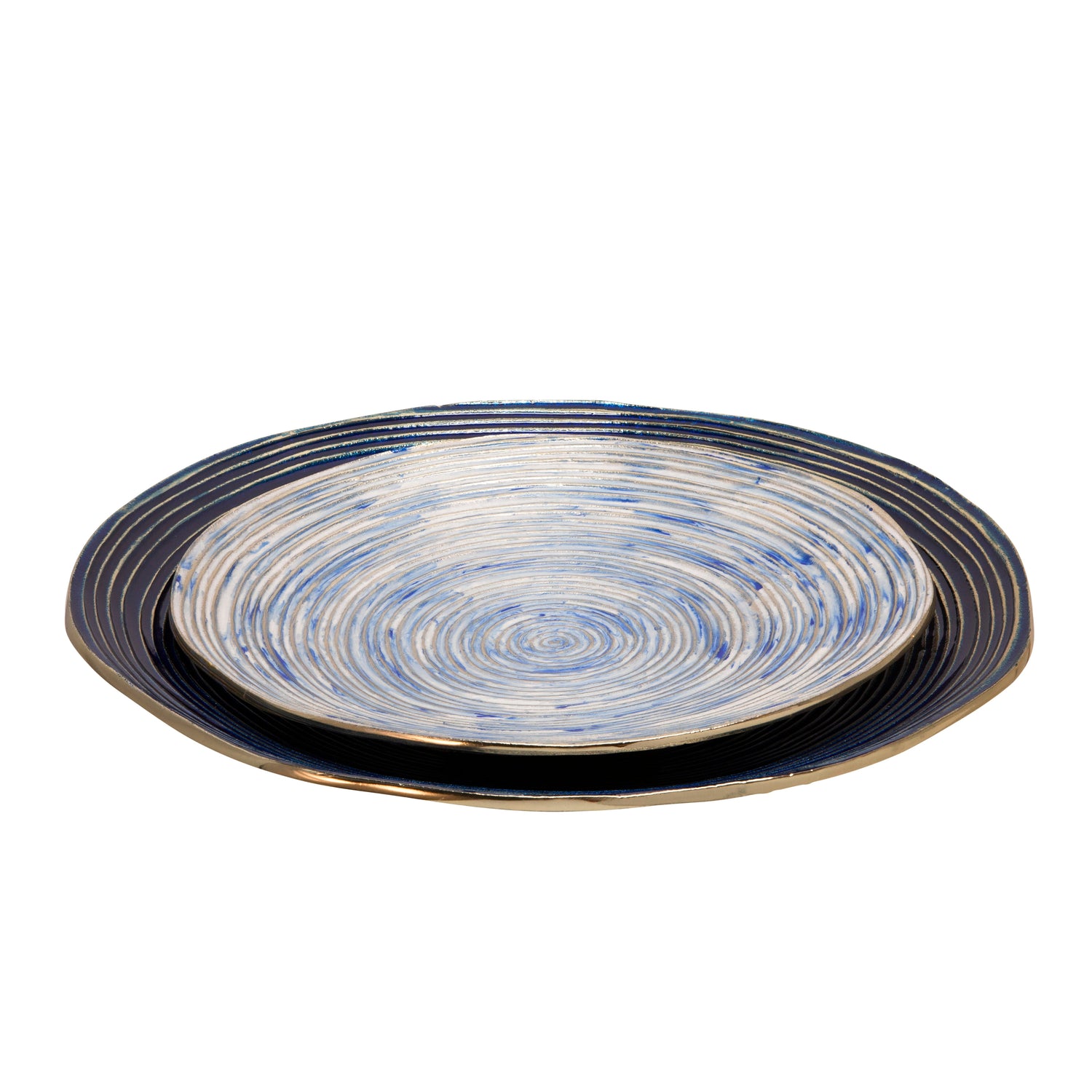 S/2 DECORATIVE METAL SWIRL TRAY, BLUE/MULTI