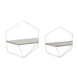 S/2 METAL / WOOD HEXAGON WALL SHELVES, WHT/GRAY