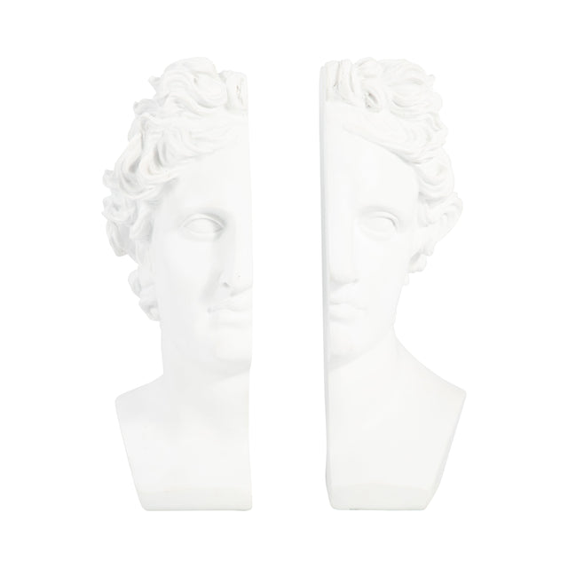 S/2 Resin, 9" Greek Goddess Bookends, White