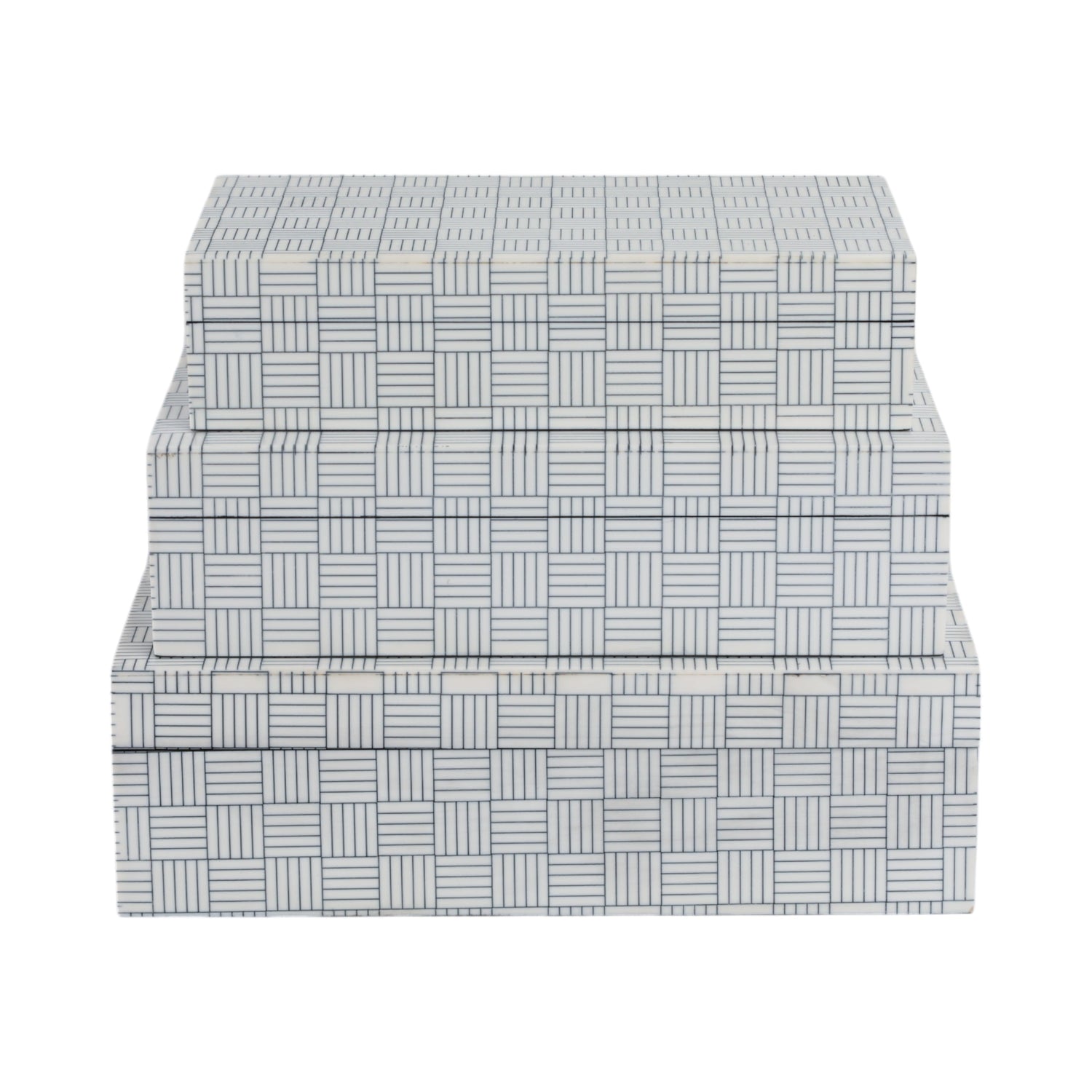 S/3 10/11/12" Checkerboard Etched Boxes, White/bla