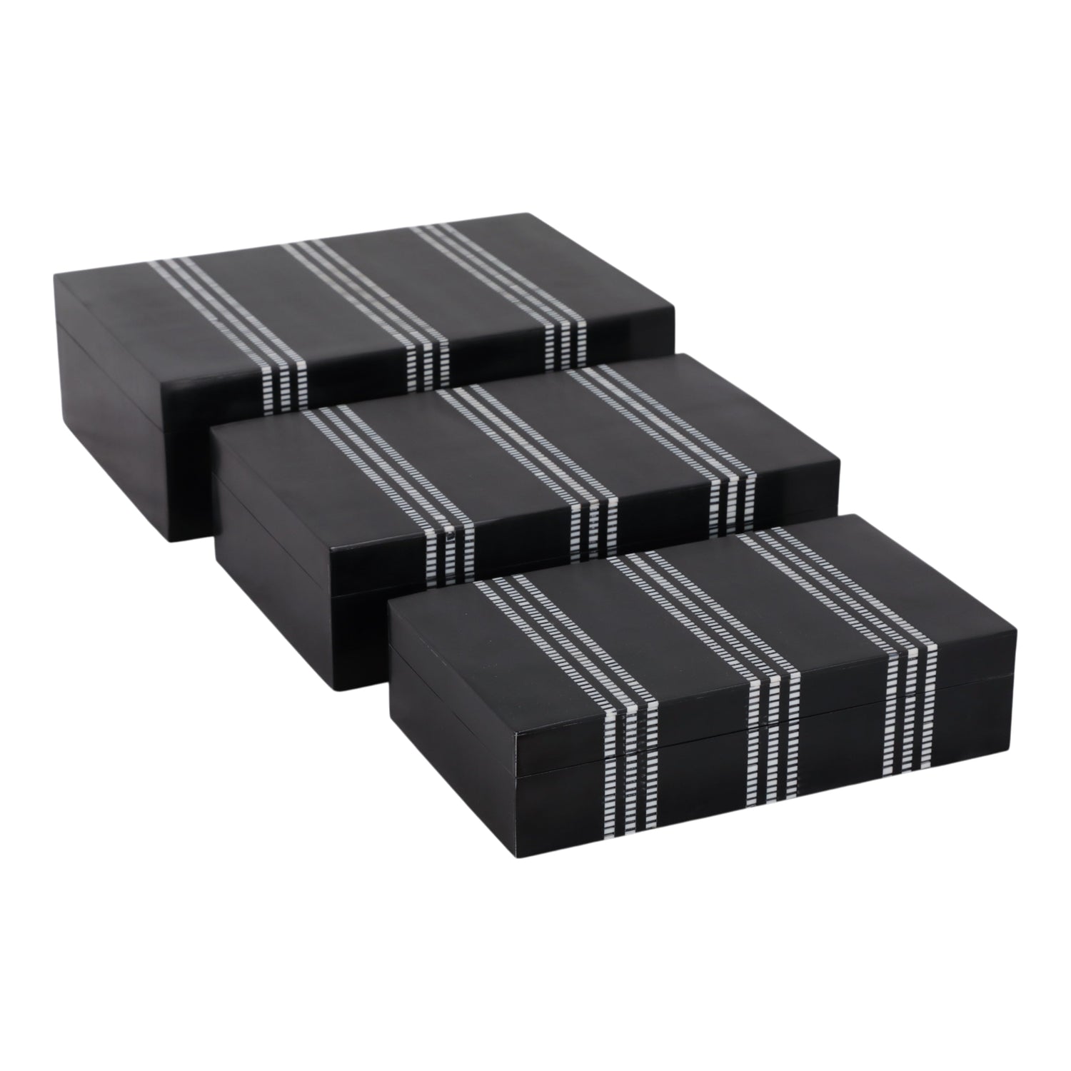 S/3 10/11/12" Ridged Stripes Boxes, Black/ivory