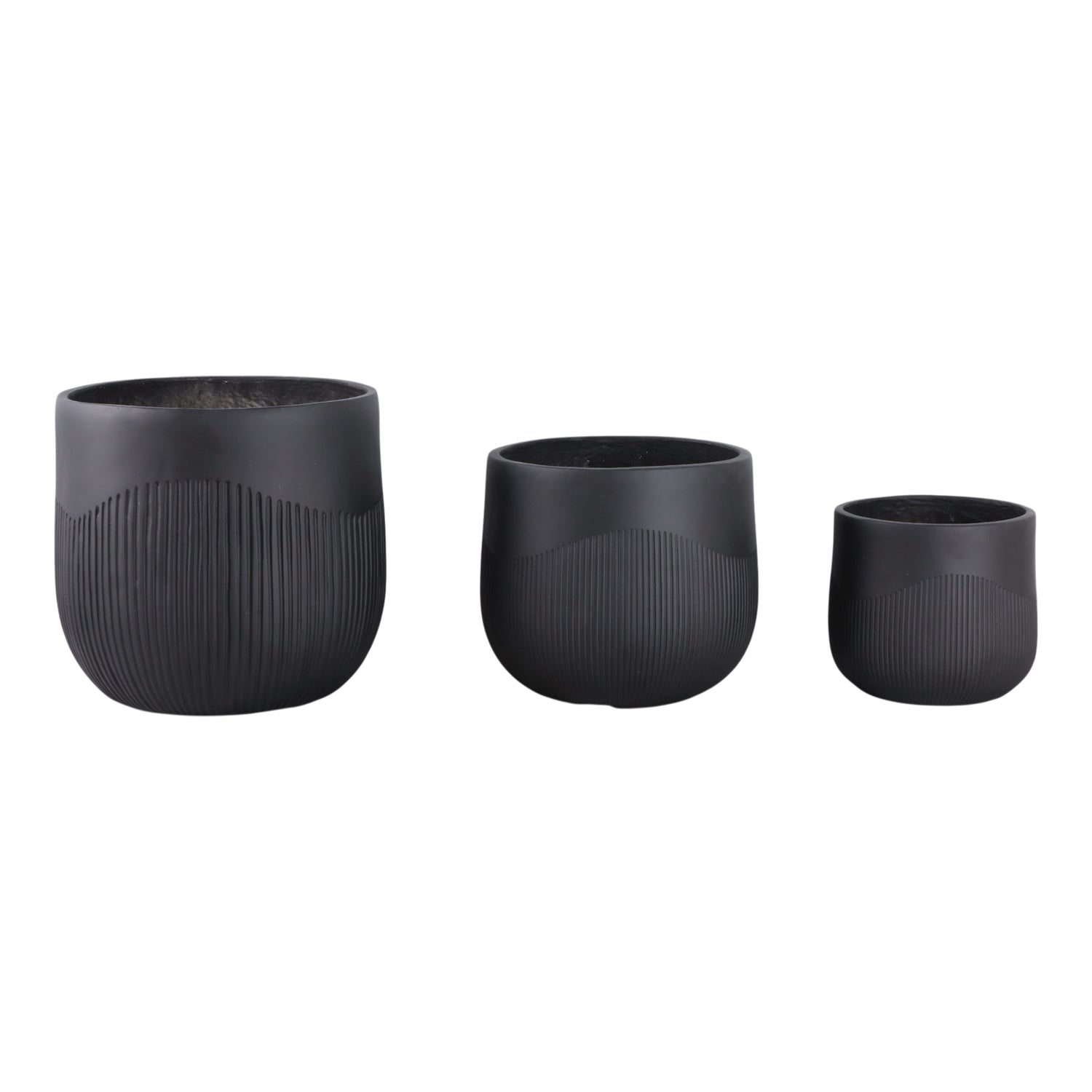 S/3 11/14/18" Resin Planters With Wavy Ribbing, Bl is backordered and will ship as soon as it is back in stock.