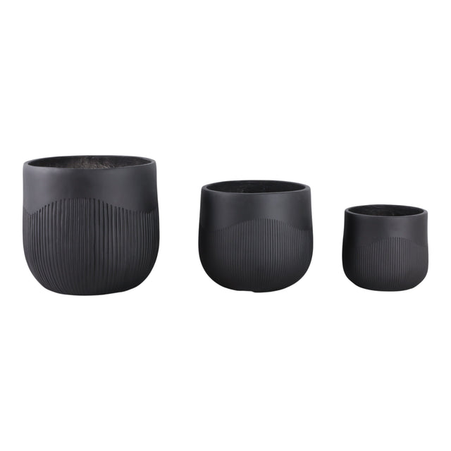 S/3 11/14/18" Resin Planters With Wavy Ribbing, Bl