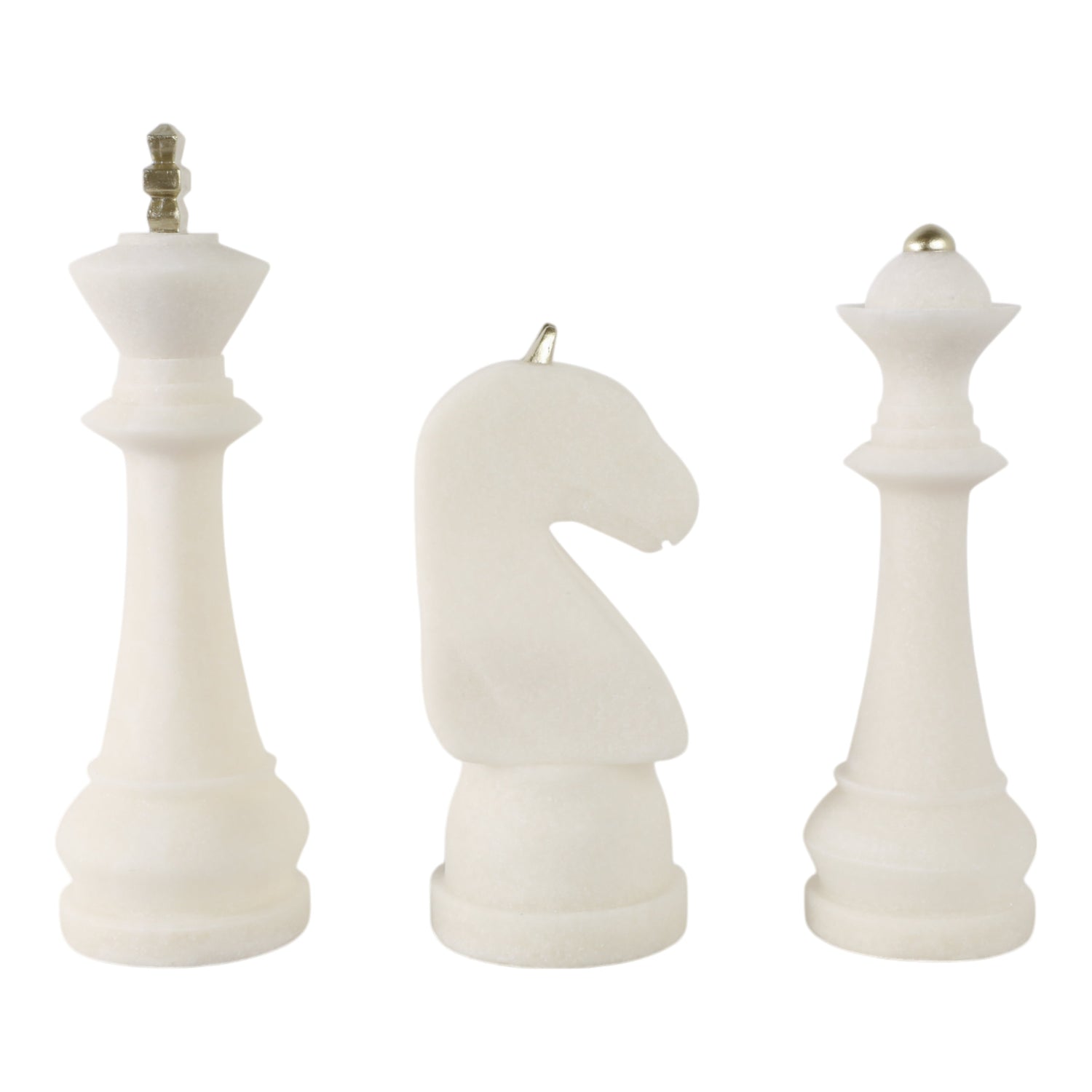 S/3 12/14/16" Afton Quartz Resin Chess Pieces, Wht