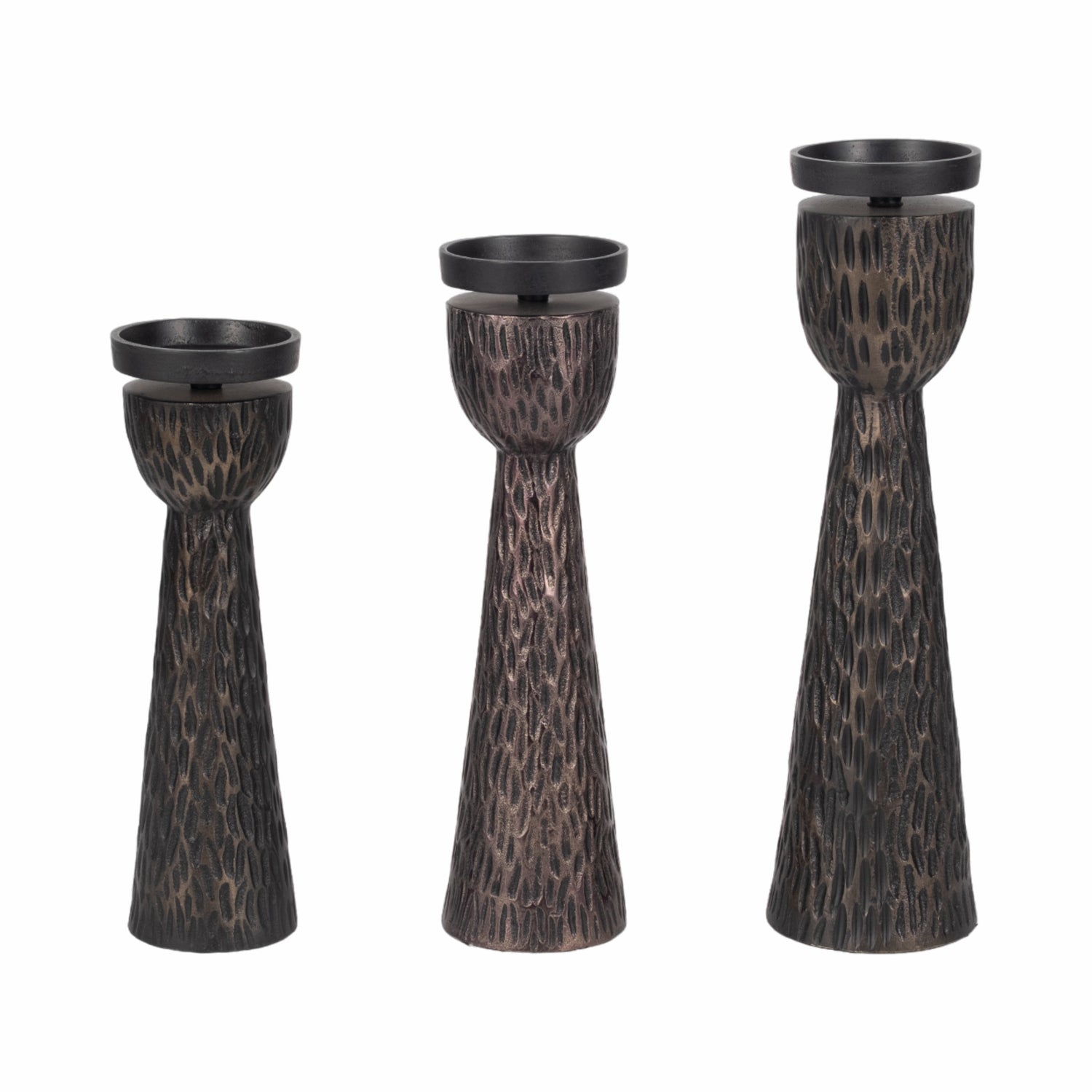 S/3 13/15/16" Cali Aluminuminum Candle Holders, Bl