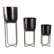 S/3 15/20/27" Etched Metal Planter On Stand, Black