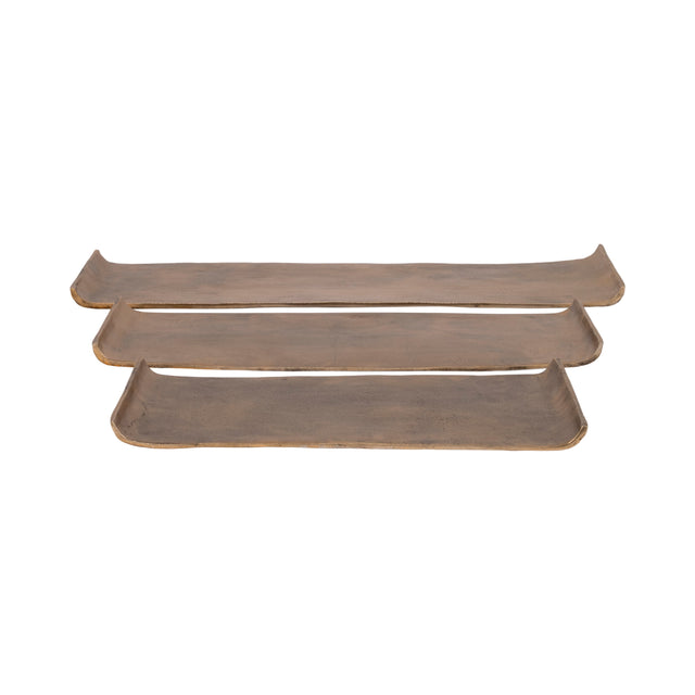 S/3 20/24/30" Rectangular Curled Trays, Antiqued G