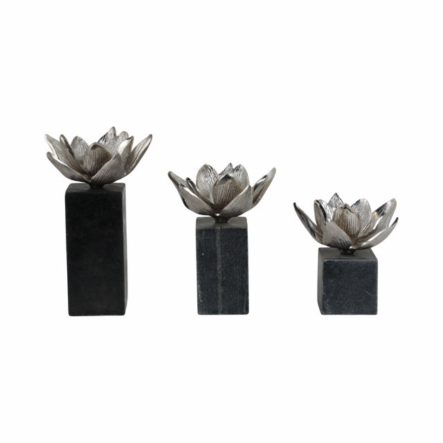 S/3 6/7/10" DARBY SILVER FLOWER STATUARY WITH MARB